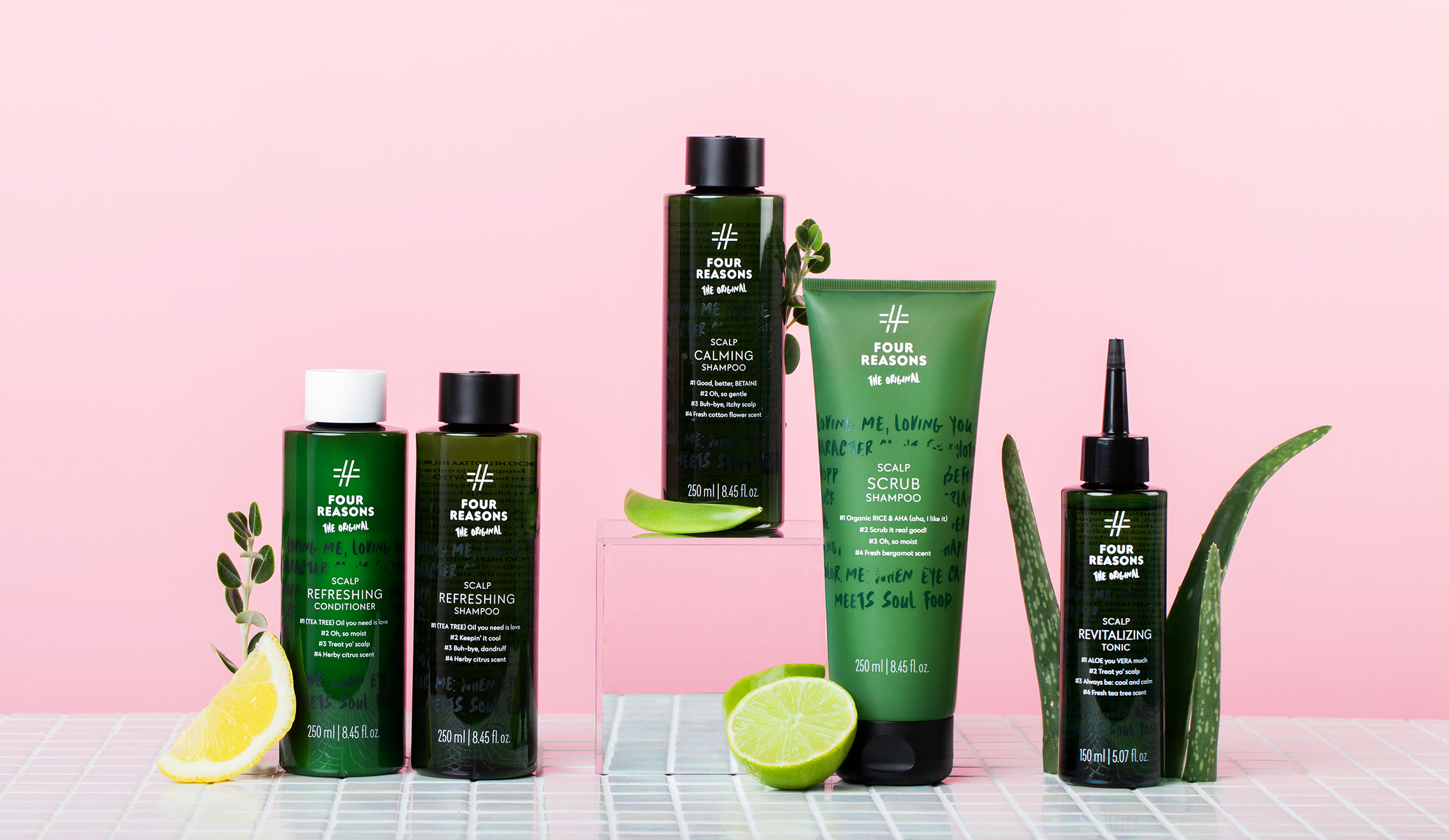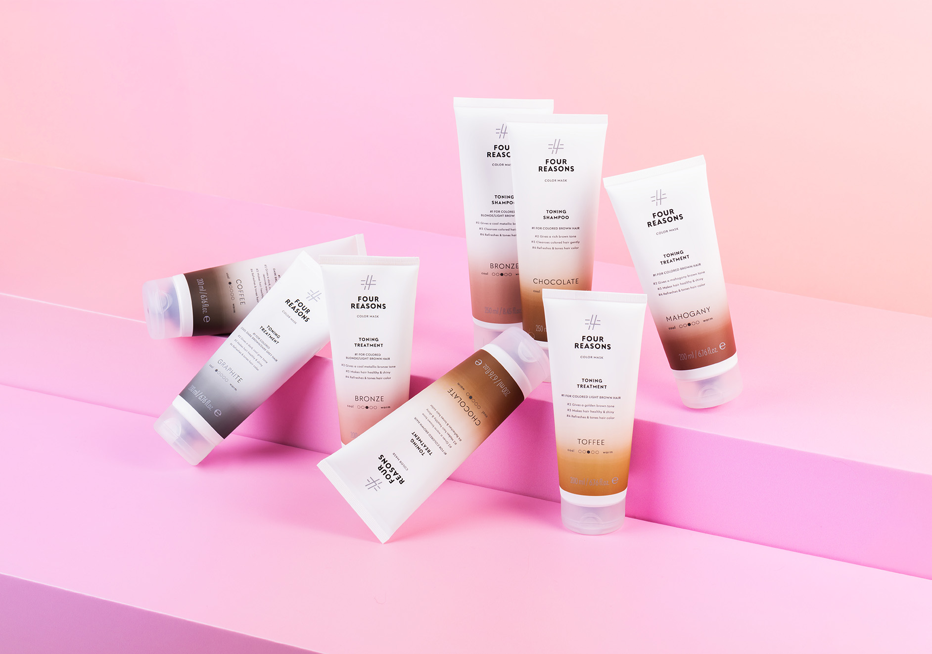 Tavoitteenamme oli luoda Four Reasonsista kansainvälisessä vertailussa positiivisesti erottuva kampaamoalan brändi. Four Reasonsista tuli muutoksen myötä Miraculoksen kattobrändi koko tarjoomalle irrallisten eri brändien ja tuotteiden sijaan. Portfoliosta löytyvät ammattilais- ja kuluttajatuotteet eri tarpeisiin sekä kampaajien koulutus- ja tukipalvelut.