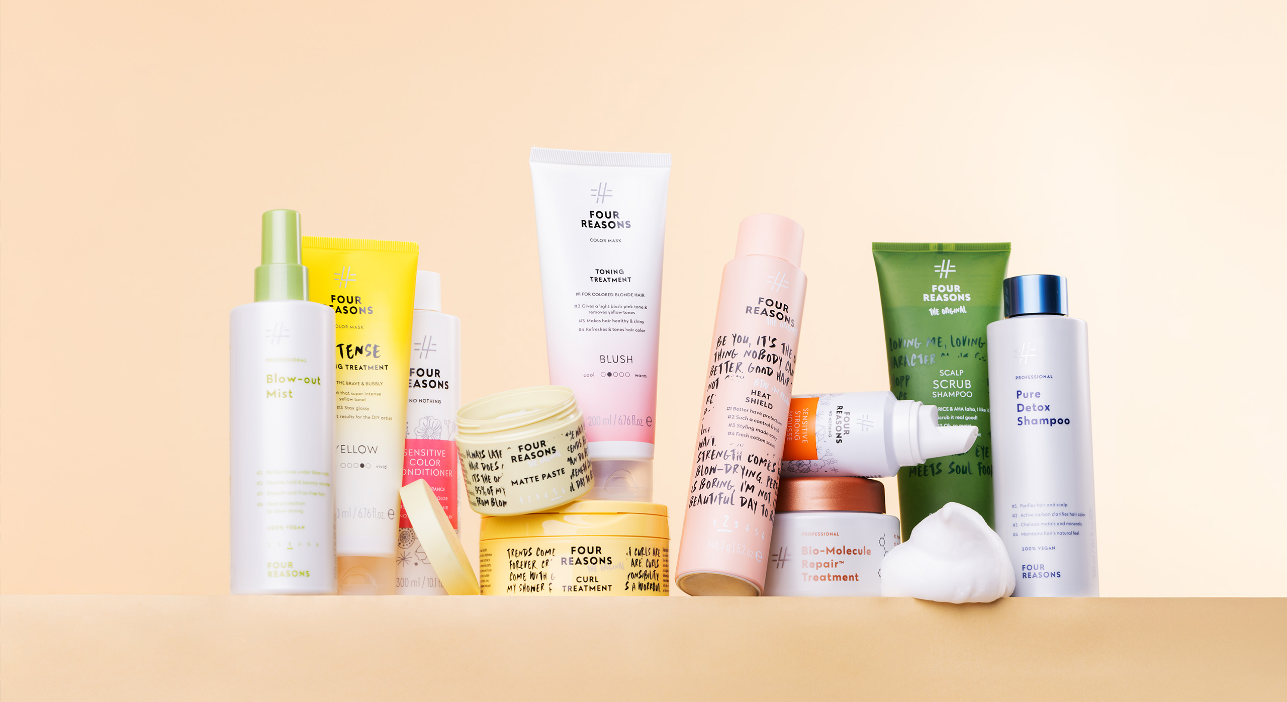 Four Reasons oli jo aiemmin tunnettu kuluttajabrändinä, mutta nyt tavoitteenamme oli nostaa Four Reasonsin laatumielikuva uudelle tasolle, myös uskottavaksi kampaamoammattilaisten brändiksi.