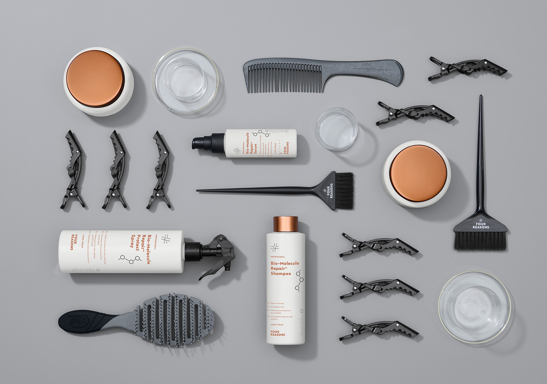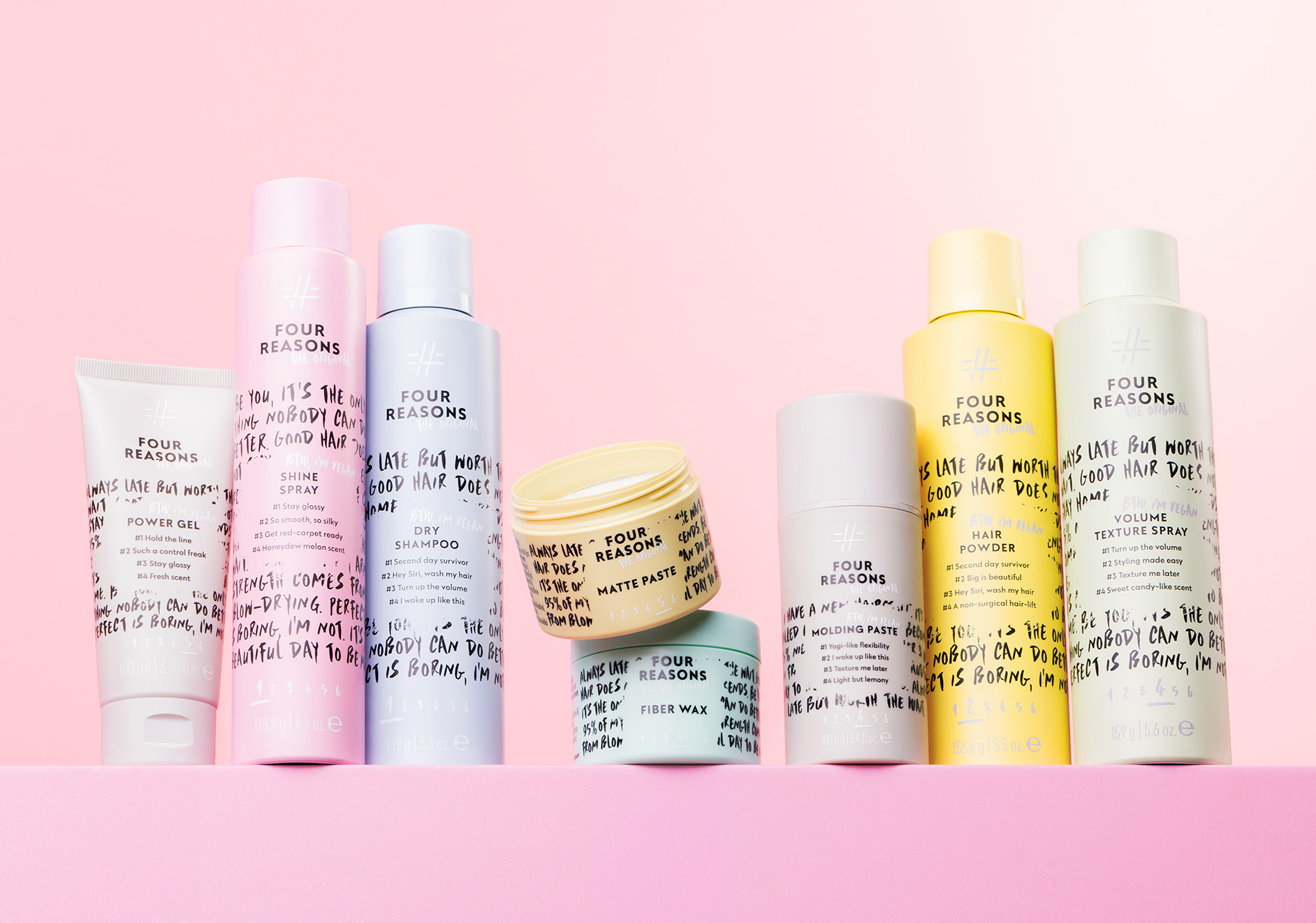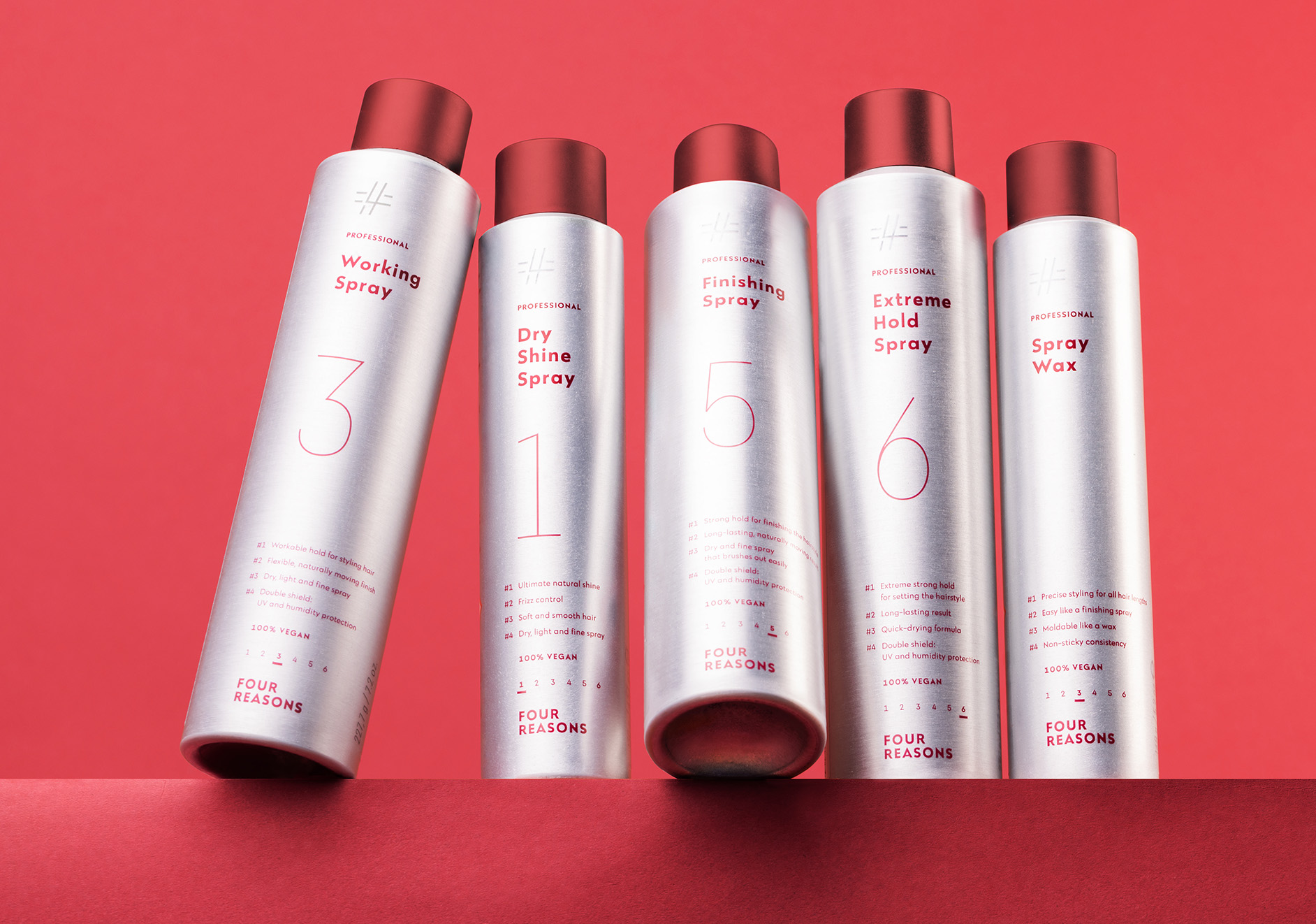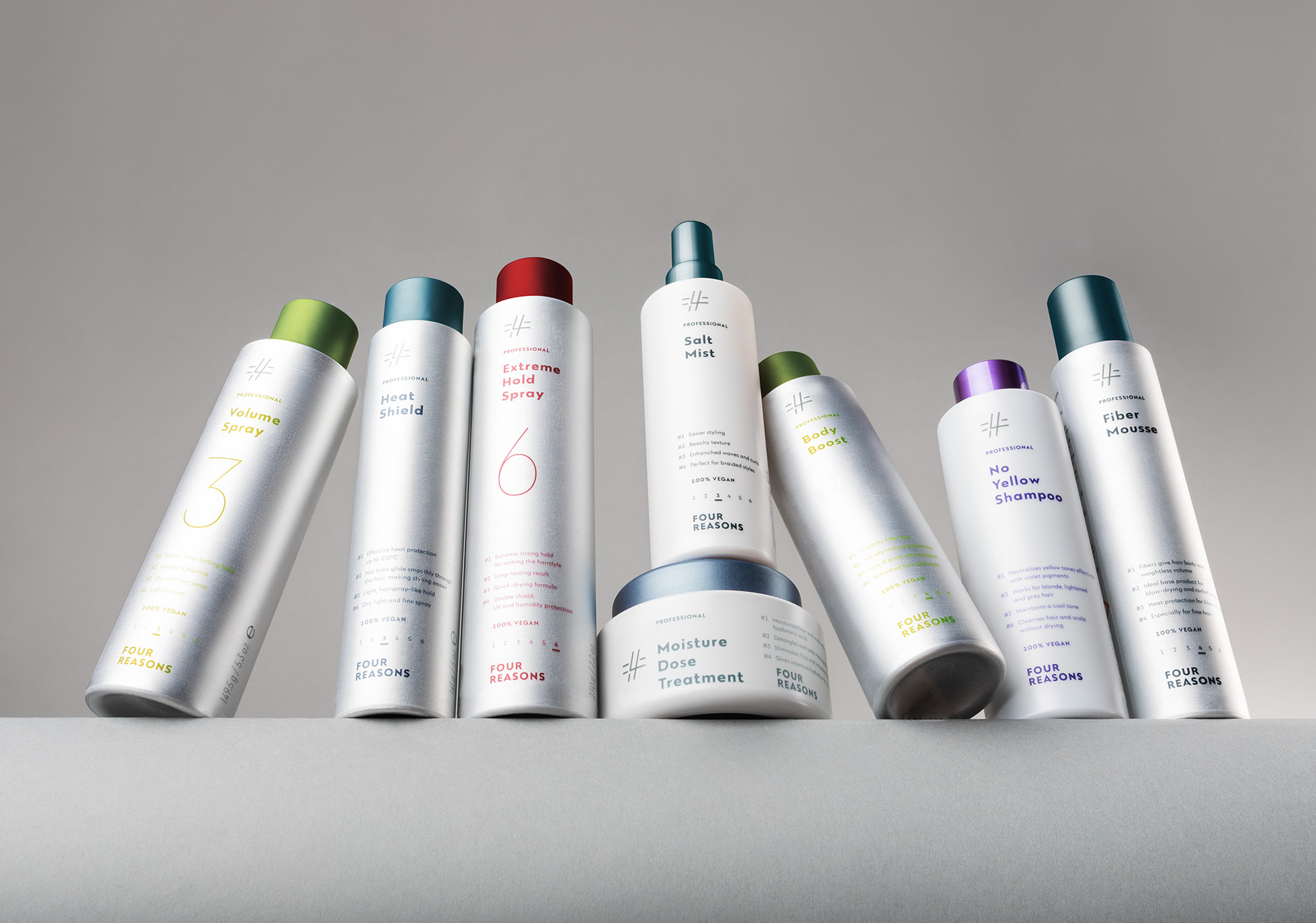 Tavoitteenamme oli luoda Four Reasonsista kansainvälisessä vertailussa positiivisesti erottuva kampaamoalan brändi. Four Reasonsista tuli muutoksen myötä Miraculoksen kattobrändi koko tarjoomalle irrallisten eri brändien ja tuotteiden sijaan. Portfoliosta löytyvät ammattilais- ja kuluttajatuotteet eri tarpeisiin sekä kampaajien koulutus- ja tukipalvelut.